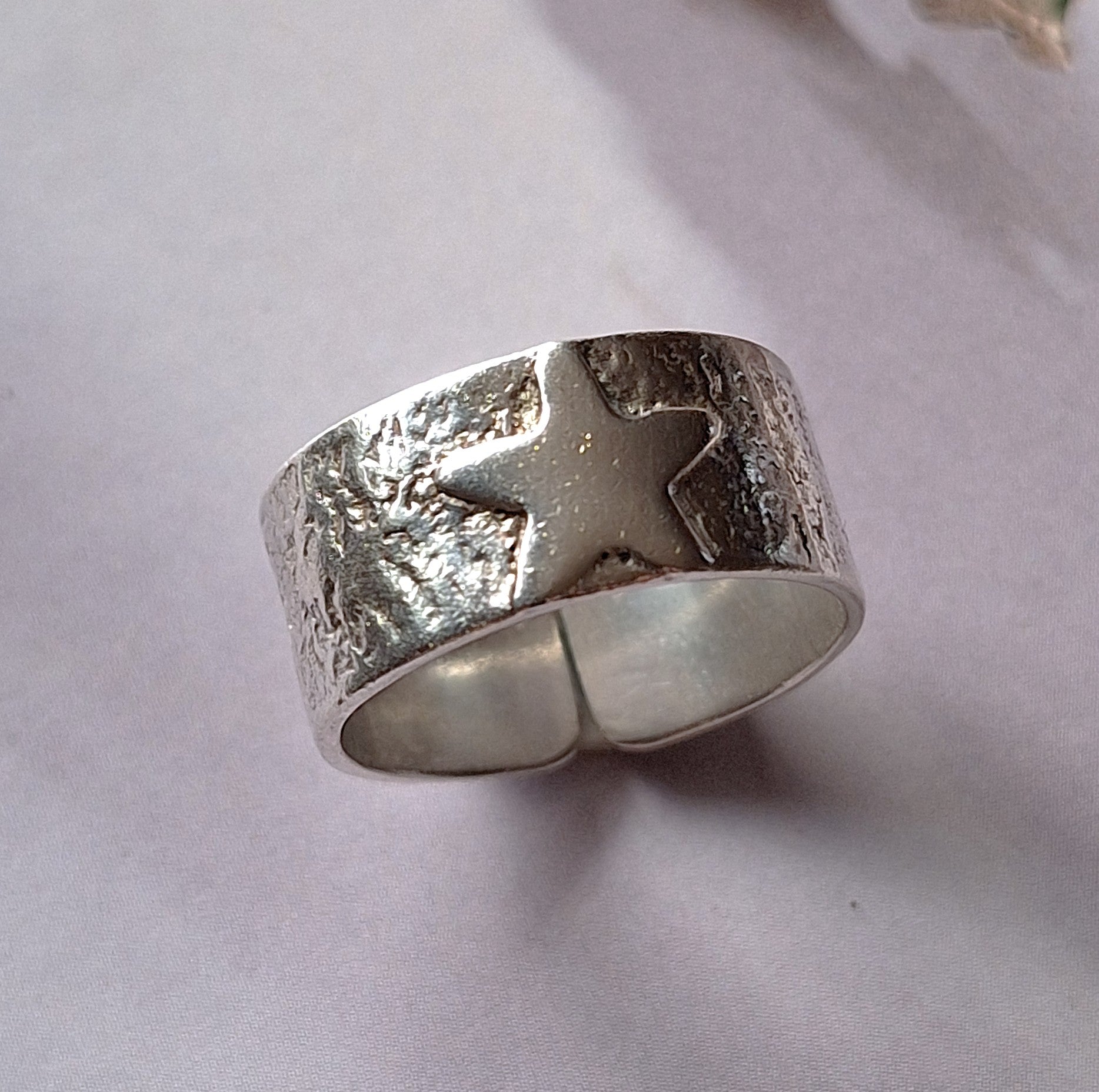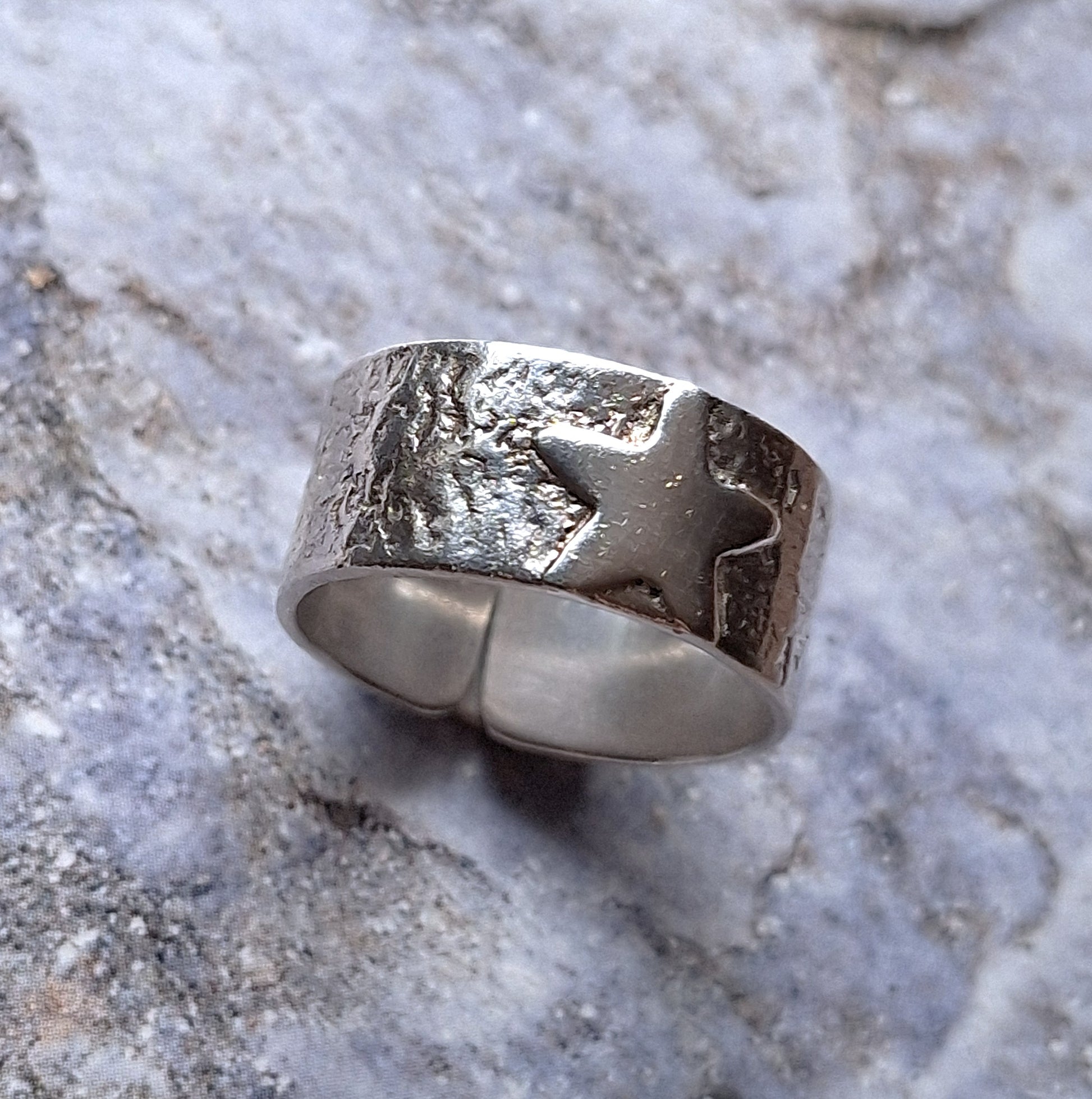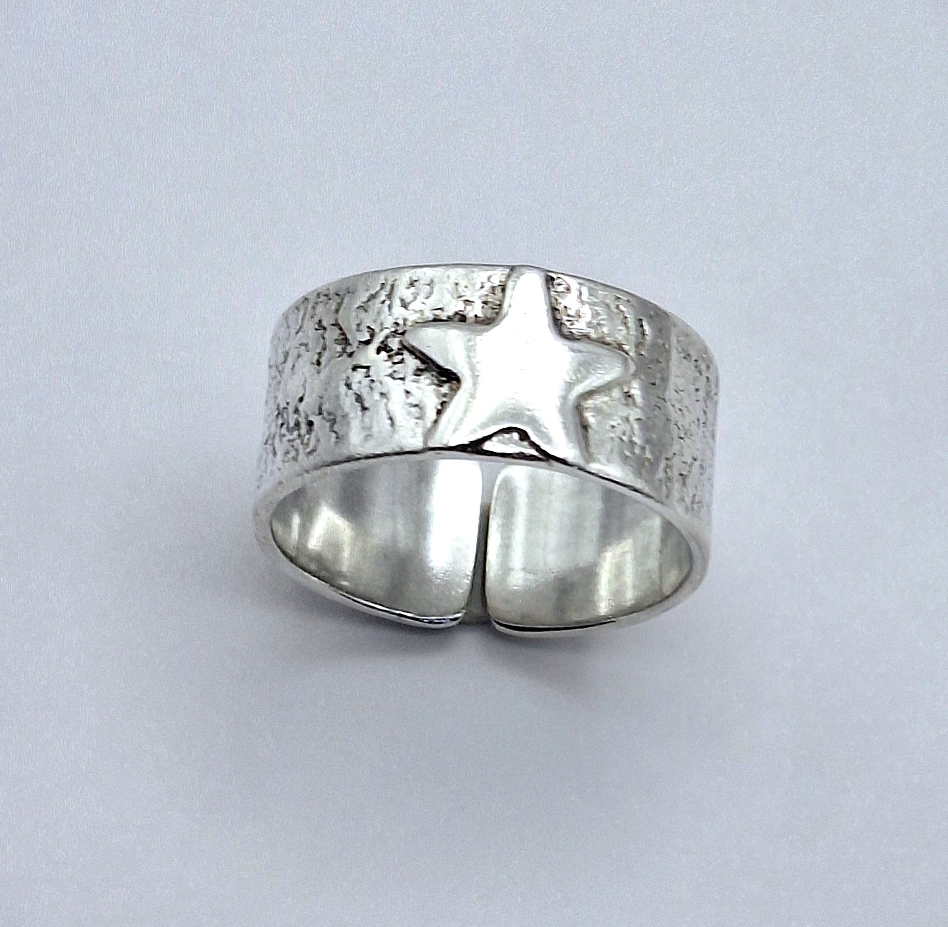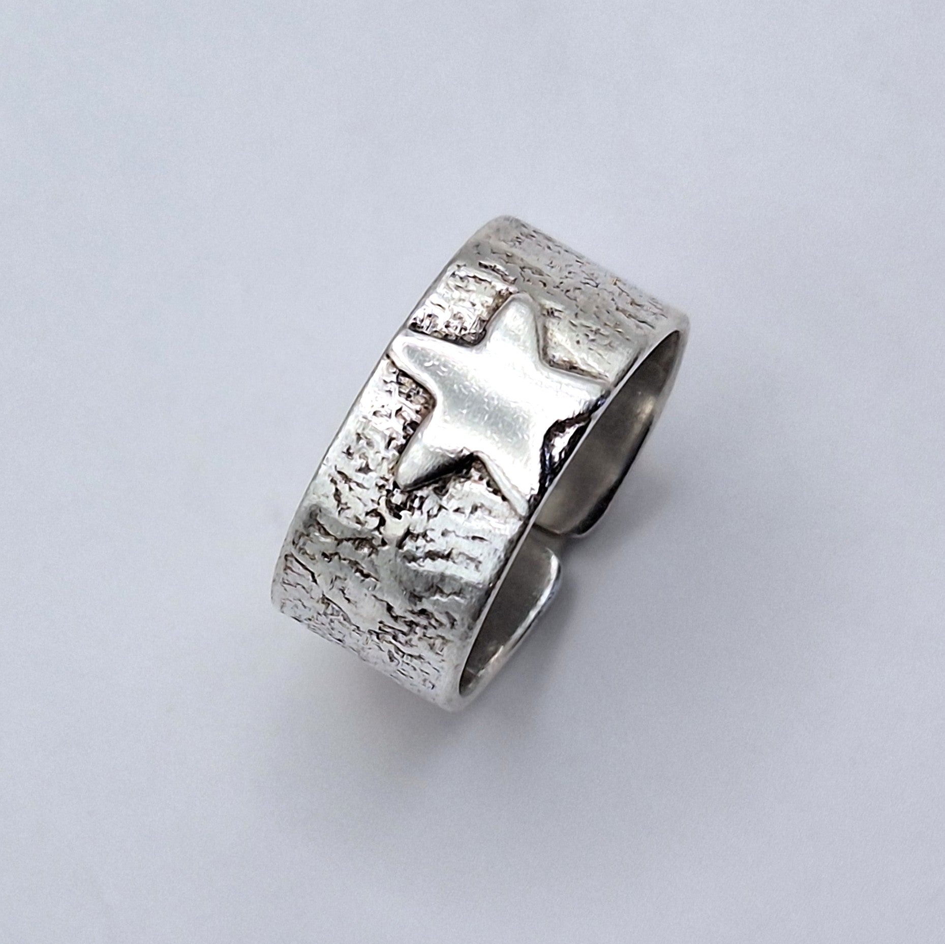 Anillo argolla ancha reticulada con estrella