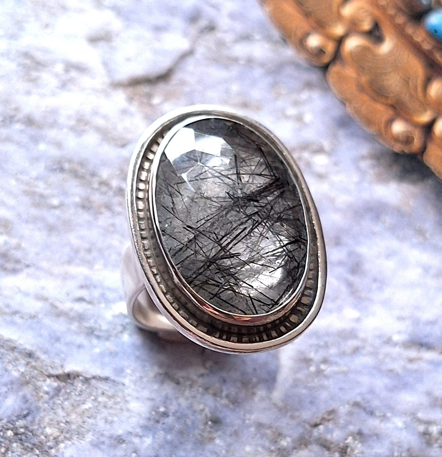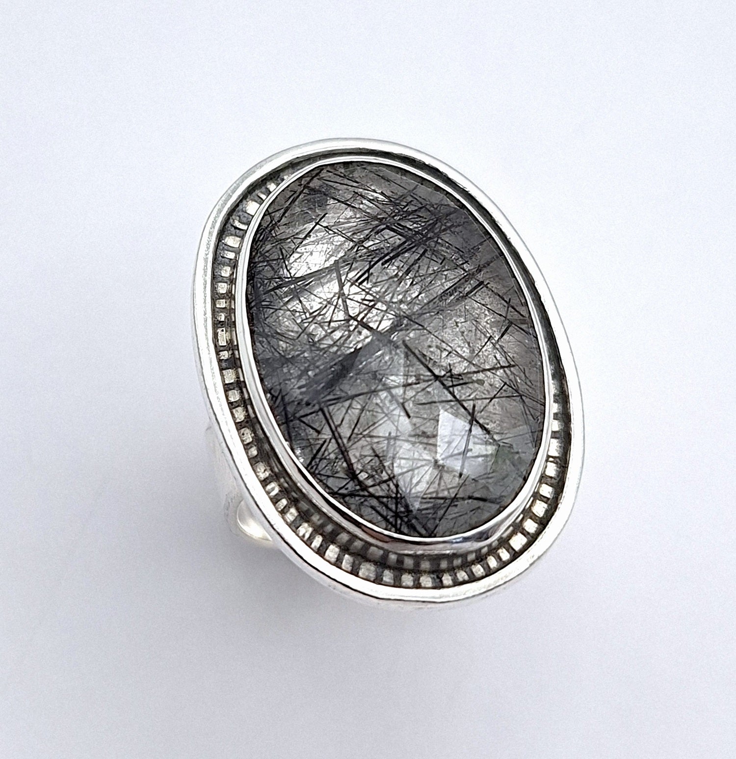 Anillo hecho a mano ; con engaste natural de Cuarzo Turmalinado