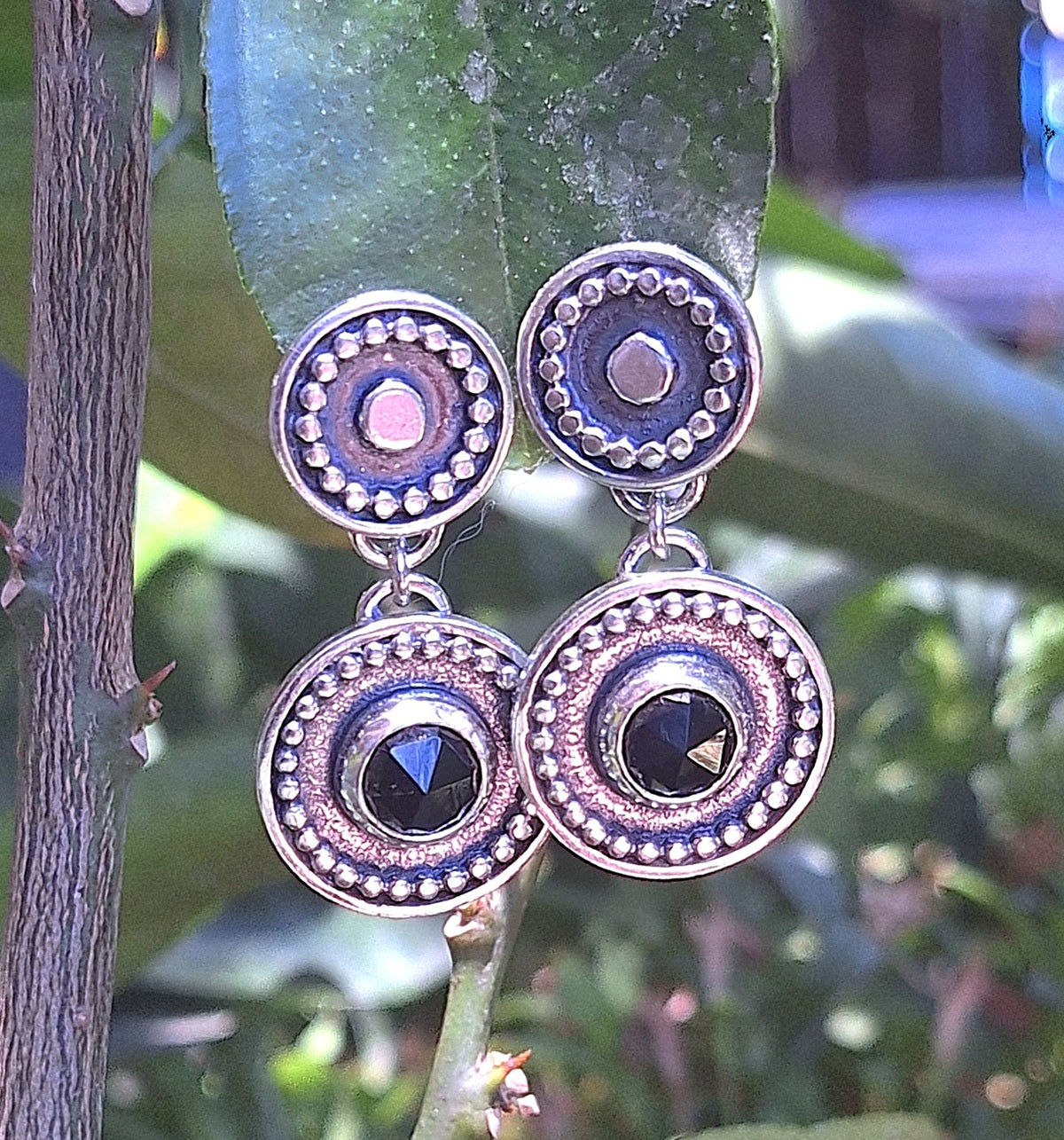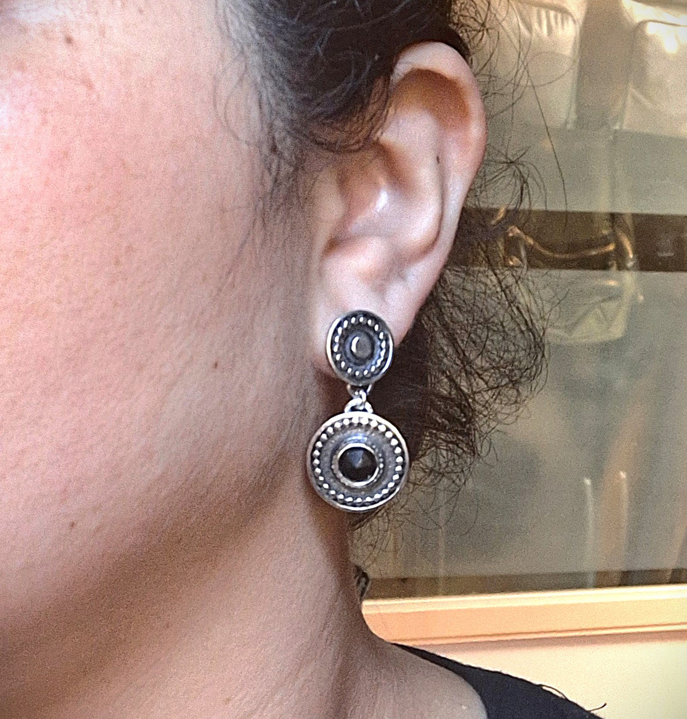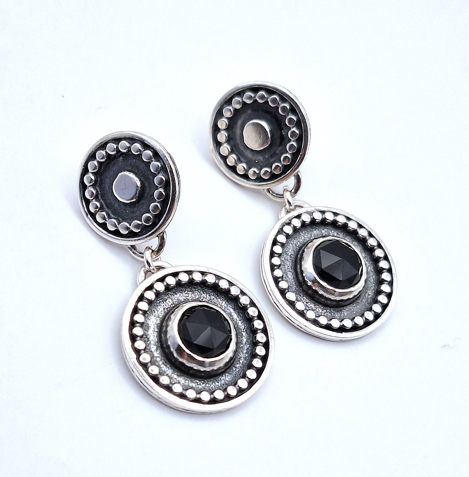 Aros hechos a mano ; con engaste de piedra natural Ónix negro